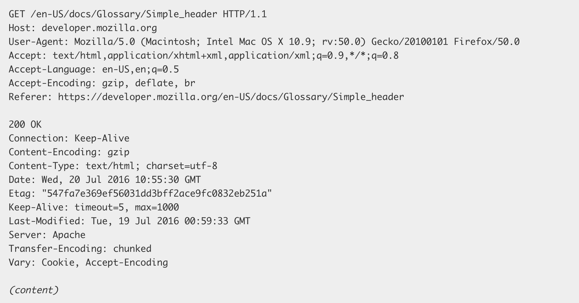 GET / HTTP/1.1 Host: naver.com Connection: close [other headers]GET 메소드를 통해 정보를 가져오고 HTTP/1.1 버전이 명시되어 있습니다.